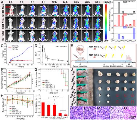 图3活体荧光成像和光动力治疗4T1荷瘤小鼠的抑瘤实验