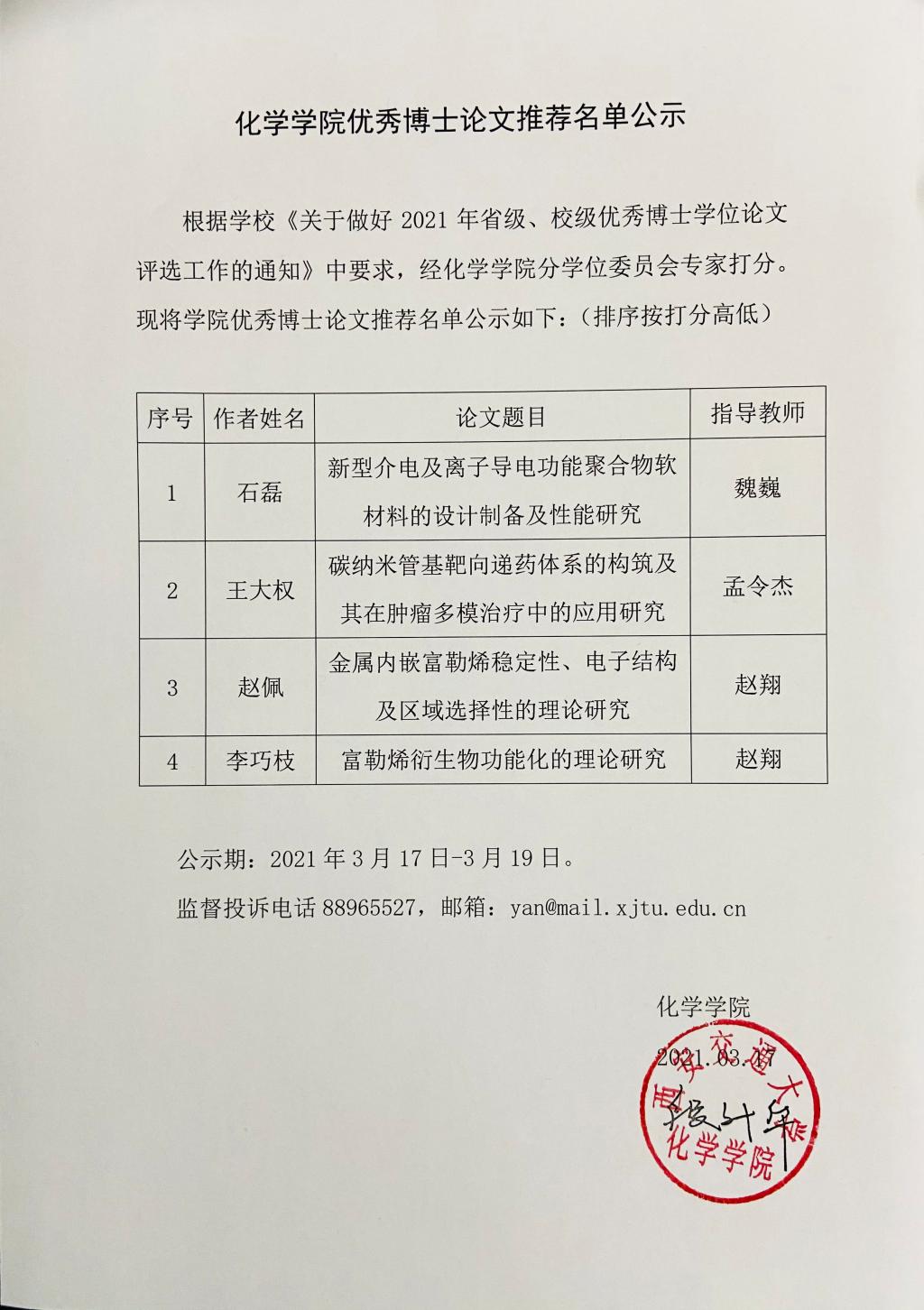 必赢唯一官方网站优秀博士论文推荐名单公示